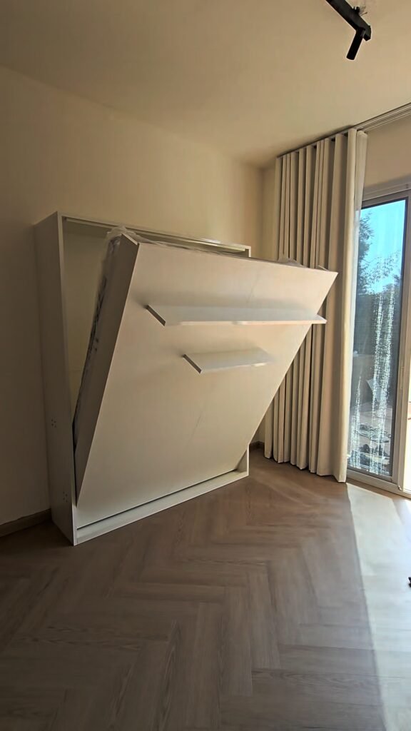 Al Shamsi Murphy Beds are crafted with precision, premium materials, and advanced engineering to ensure smooth, silent, and safe operation. Each bed is equipped with high-quality lifting mechanisms that allow effortless opening and closing, making daily use convenient for users of all ages. The balanced system ensures stability and long-term reliability, providing peace of mind alongside everyday comfort. Unlike traditional foldable beds, Al Shamsi Murphy Beds are built for regular use and offer the same level of comfort as a standard bed.